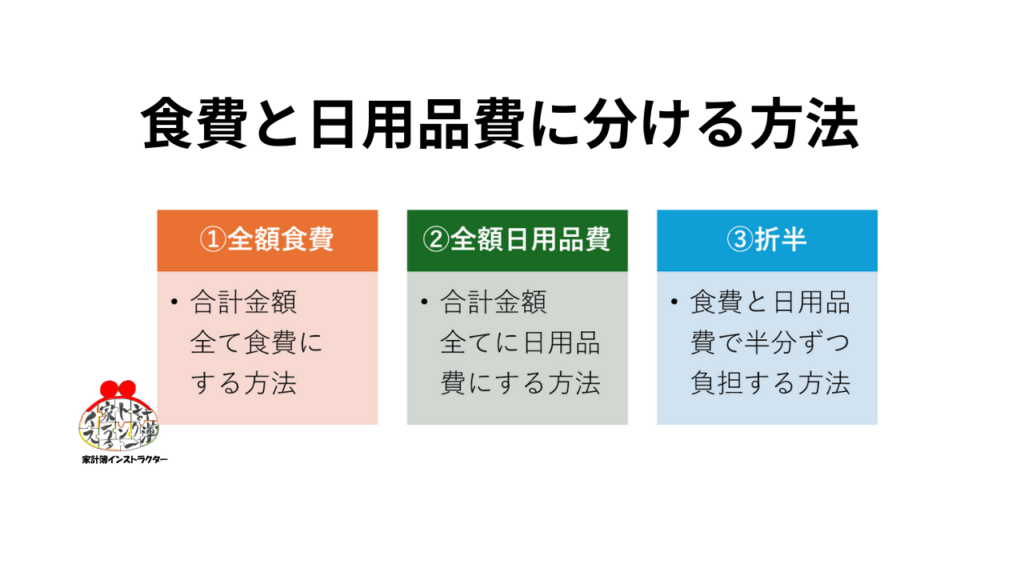 食費と日用品費が混在したレシートを分ける方法は3つあります。
